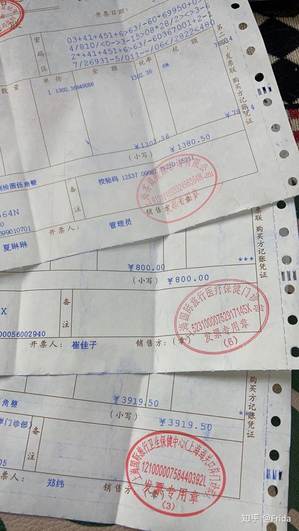 时至今日 我才收到最后他们开的发票而且只能开个人,发票上一张是3919.5 是国际旅行卫生保健中心给的 一张800 也是国际保健门诊的 最后一张是1380 是他们淘宝的服务费用。