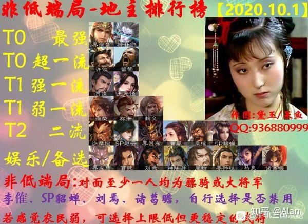 高端局(无骠骑以下玩家),选将框无T0以上武将不要抢地主送豆,老老实实玩农民,非T0地主一般打不了对面两个顶级农民,而且现在高端局默认对面农民一人一个桃,开局秒人比较困难 补充:最近的环境中由于白马徐荣出色的首轮爆发,隐隐约约有跻身T0的趋势,在有这俩的情况下也可以考虑抢三倍;贾逵随着时间的推移,大家都知道不能贸然打贾逵,经常会被养猪养死,强度有所下降;而曹纯的表现越来越拉胯,高端局选出来就是送,通常是活不到完全体就被两个猛男抬走了,或者遇到对面也是发育流农民,觉醒了还是打不过