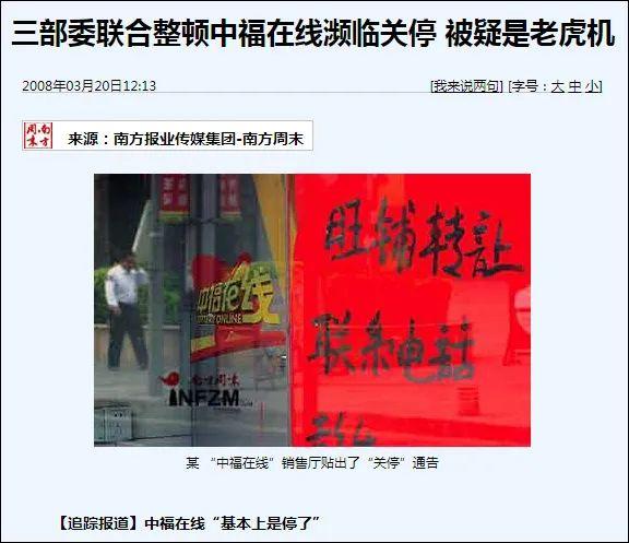 之后有报道称,三部委联合整顿中福在线,后者濒临关停。