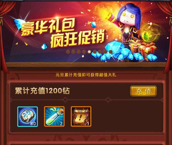 累计充值到1200钻石的玩家,可以获得贤者之石*80、体力药水*2、军情处的密报*1