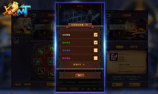 在装备的获取和强化方面,“懒”更是被体现得淋漓尽致啦!MT的背包不再是一款简单的背包。