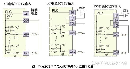 如光电开关等传感器开关器件,其输入部分接直流电源(可接PLC的内部24V输出电源),其输出部分接在输入端子和输入公共端子两点之间。
