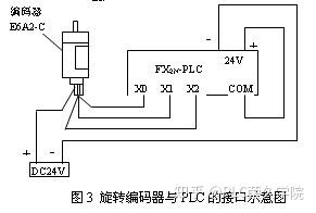 图3为FX2N型PLC与OMRON的E6A2-C系列旋转编码器的接口示意图。